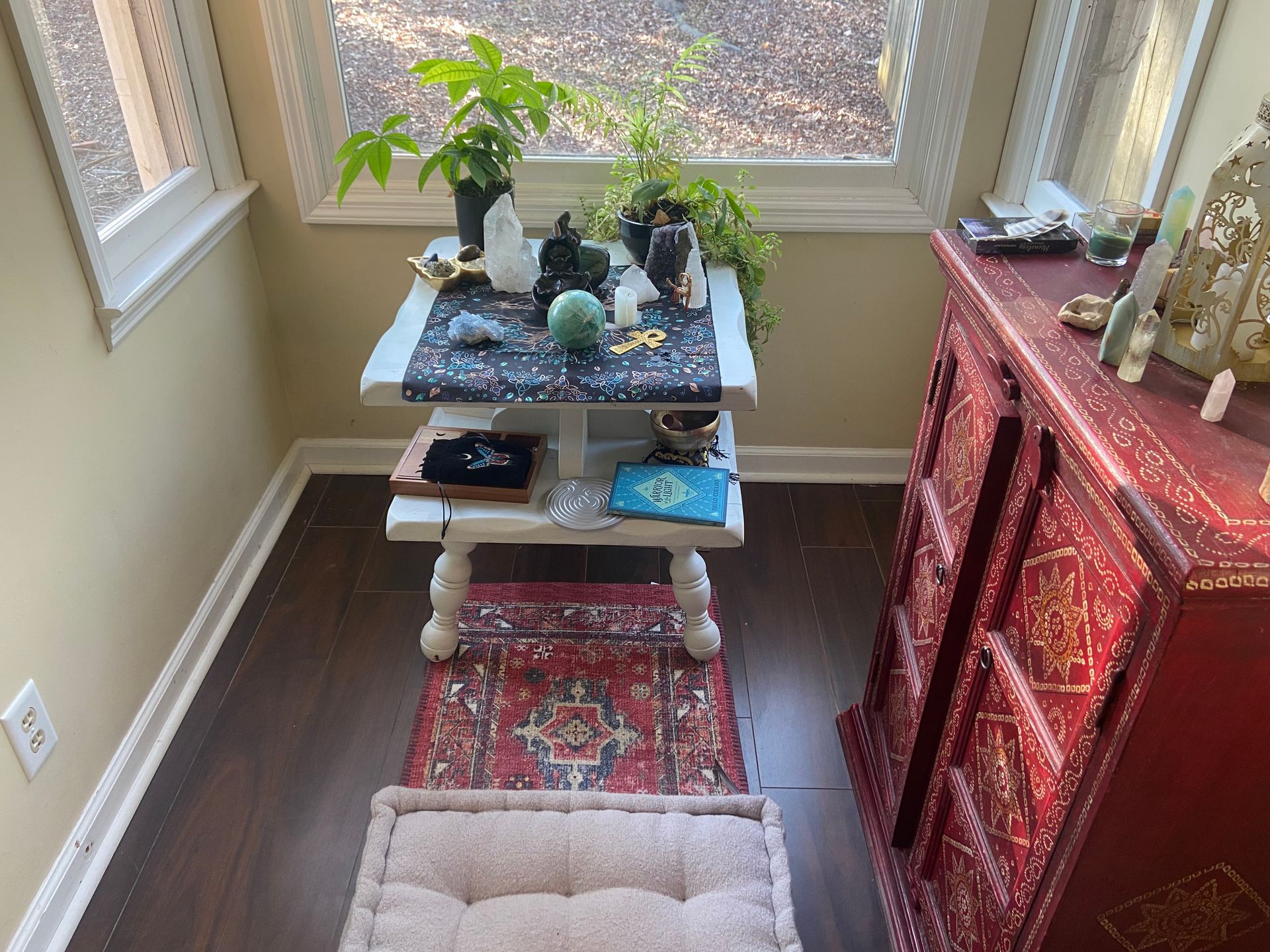 A ritual can be as simple as brewing a cup of coffee at the same time each day and enjoying it with peace and stillness. Or it can be as complex as you’d like it to be. Maybe a ritual involves journaling, creating, exercising, nature, prayer, poetry, or body movements. For me, I carved out a small room in my house I dubbed “my meditation room.” I spend time here first thing every morning, not always for long, but long enough to be still and check in with myself. I usually light a candle and some incense, sometimes I’ll add a reading or play my sound bowl. Usually a cup of coffee is involved. There are days when it has felt a bit forced and when I want to rush through it, and I’ve changed it over the years to make it feel less routine and more special when it starts to get mundane. What I know is on my good days, ritual starts my day by centering and grounding me. And when I’m at my lowest, ritual is what keeps me anchored. It lets me know I’ve chosen myself, I’m never alone, and I’m safe.